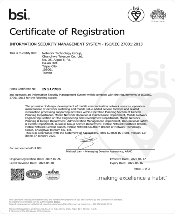 我們持續強化隱私保護作業程序,確保各作業環節落實個資隱私保護安控措施;定期辦理個資隱私保護相關訓練,提升公司整體個資隱私保護素養,並透過定期測試與演練,檢視及衡量個資保護相關措施之有效性;對外,我們的《隱私權保護政策》已通過第三方符合性查證,並每年接受內、外部稽核與認證(如ISO 27001 / ISO 27011 / ISO 27017 / ISO 27018 / BS 10012 / CSA STAR Certification,證書持續有效),提供消費者更完善的資安與個資隱私資料保護。
